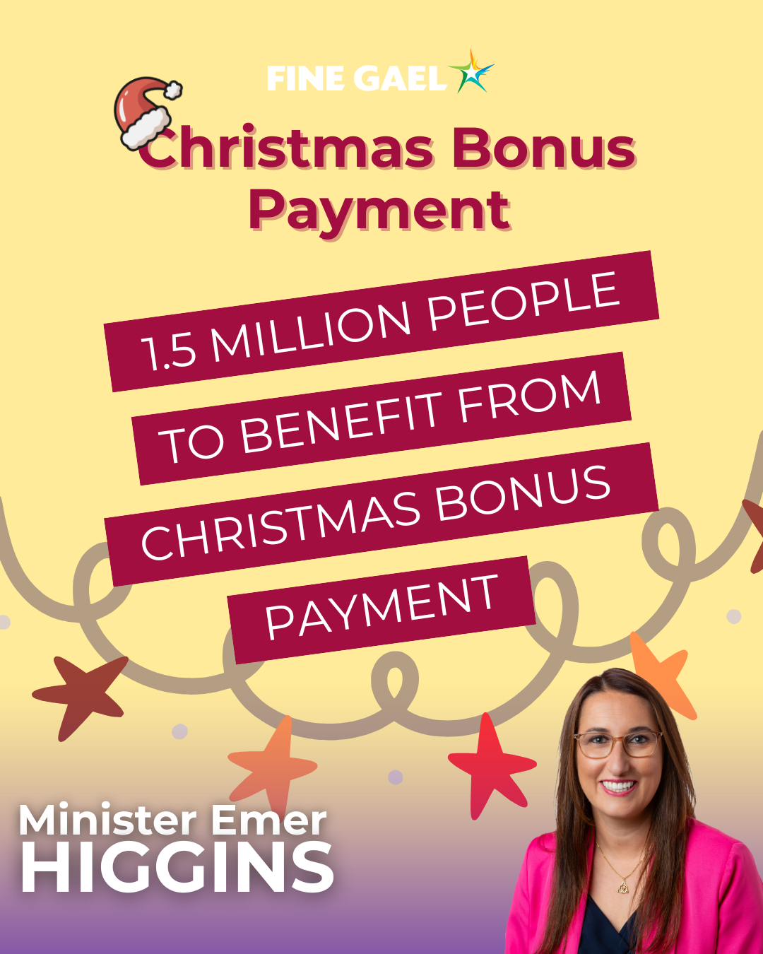 Nationally, the payment will benefit some 1.5 million people and represents a total investment of €370 million being issued from today. People will receive their Christmas Bonus on the same day that they usually receive their primary payment.